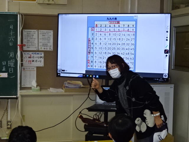 初めに、「かけられる数」「かける数」「~のだん」という言葉を使いながら