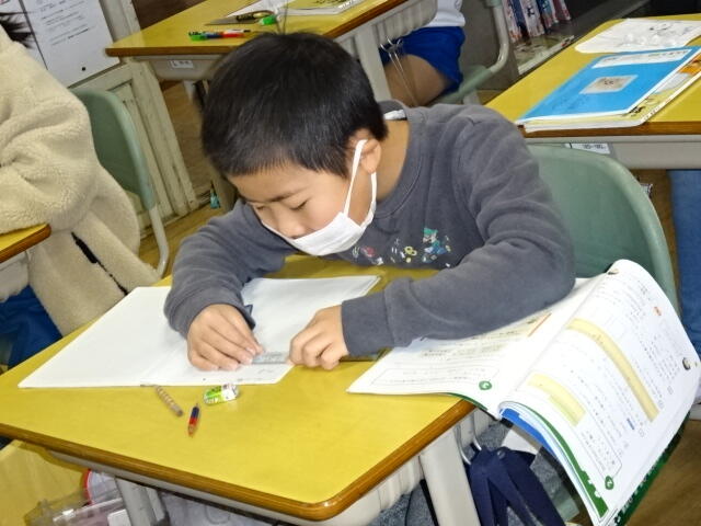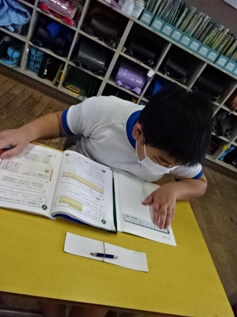 まず、子どもたちは、ノートに3cm7mmの直線をかきました。