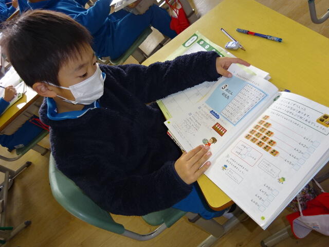 今まで学習したことを思い出すために、教科書を見て考えている子どももいました。