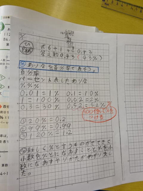 子どもたちが苦手とする割合の学習ですが、真剣に話を聞いて理解しようとがんばりました。