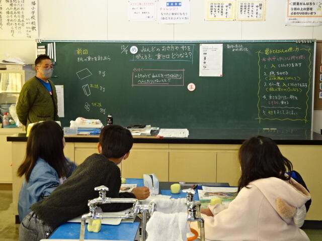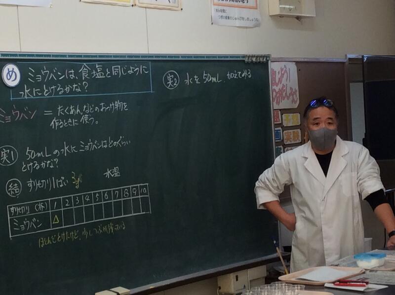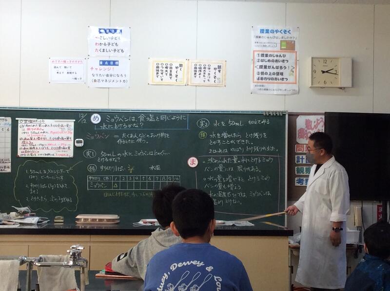12月12日5校時,5年生の理科の授業です。「物のとけ方」の学習で、ミョウバンは食塩と同じように水にとけるかを実験で調べました。こちらは、実験結果をまとめているところです。