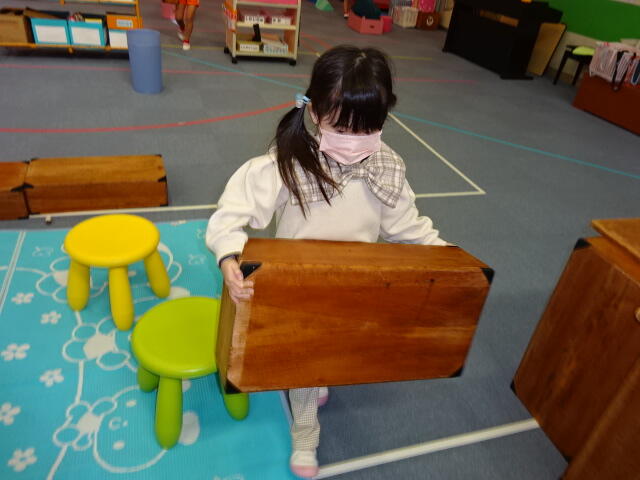 幼稚園の片付けの様子です。