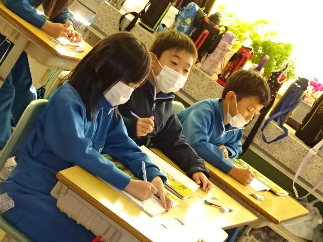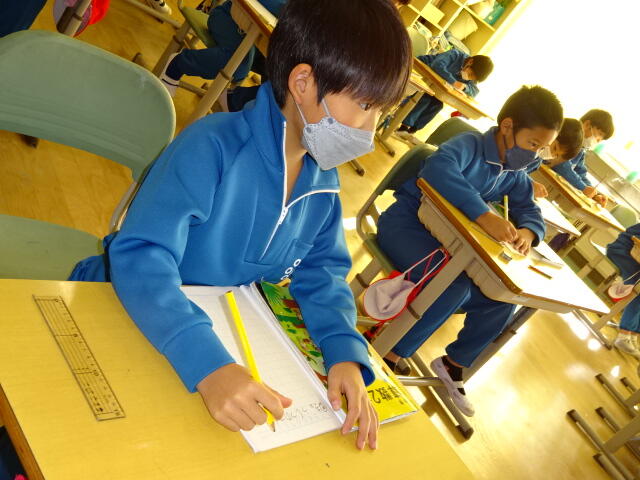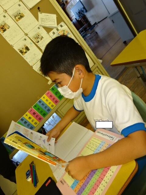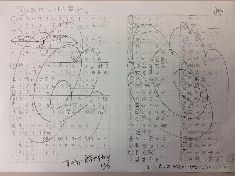 先生が言った問題を聞いて一緒にノートに書く共書きが、はやくできるようになってきています。