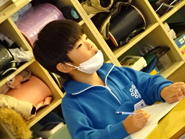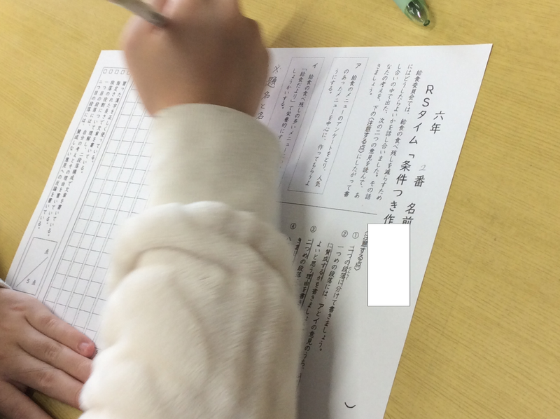 12月7日のRSタイムの様子です。今回は、新しい問題の条件付き作文に取り組みました。まずは、子どもたちが自分で問題を読み、何を聞かれているのか、そしてどのように書けばいいのか、大事なところに線を引いて考える時間をとりました。