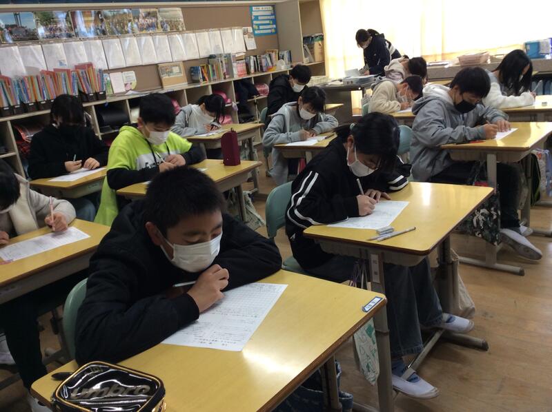 次に、線を引いたところをもとに作文を書き始めました。教室には、鉛筆で書く音だけが響いています。条件付き作文も、3回目の問題となり、学年によって段落を分けて書くことや、自分の考えに理由も付け加えること、体験したことを書くこと、反論に対する自分の考えも書くことなど、書き方のこつをつかんできたようです。
