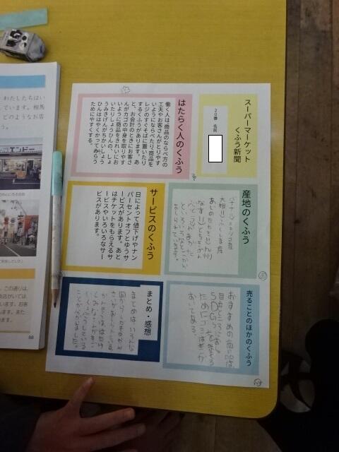 スーパーマーケットに見学に行ってわかったことを「スーパーマーケットくふう新聞」にまとめました。