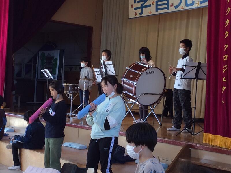 5校時には、5年生が外部講師の先生より合奏の指導をしていただきました。自分の楽器の音に、自分の気持ちを込めるようにとの助言をいただきました。出だしや最後の部分などを練習しているうちに、音がきれいに重なる部分が増えてきました。学習発表会当日の演奏も、楽しみです。