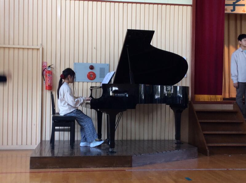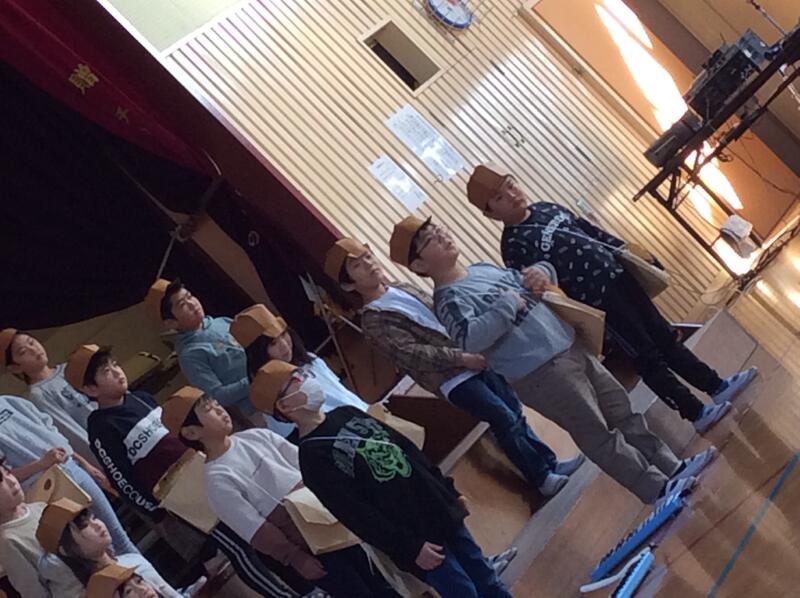 そして最後は6年生。歴史劇「タピオカ・ツンドラ」です。時空を越えて歴史の旅をするというストーリーです。縄文人に弥生人、卑弥呼、足利義満に足利義政とたくさんの歴史上の人物が登場しました。最後は、みんなで「Wish~夢を信じて~」の合唱を披露しました。ピアノの伴奏に合わせて、響きのある歌声が体育館いっぱいに広がりました。