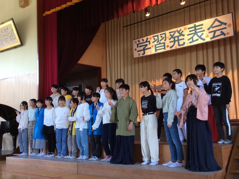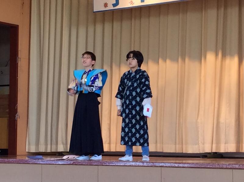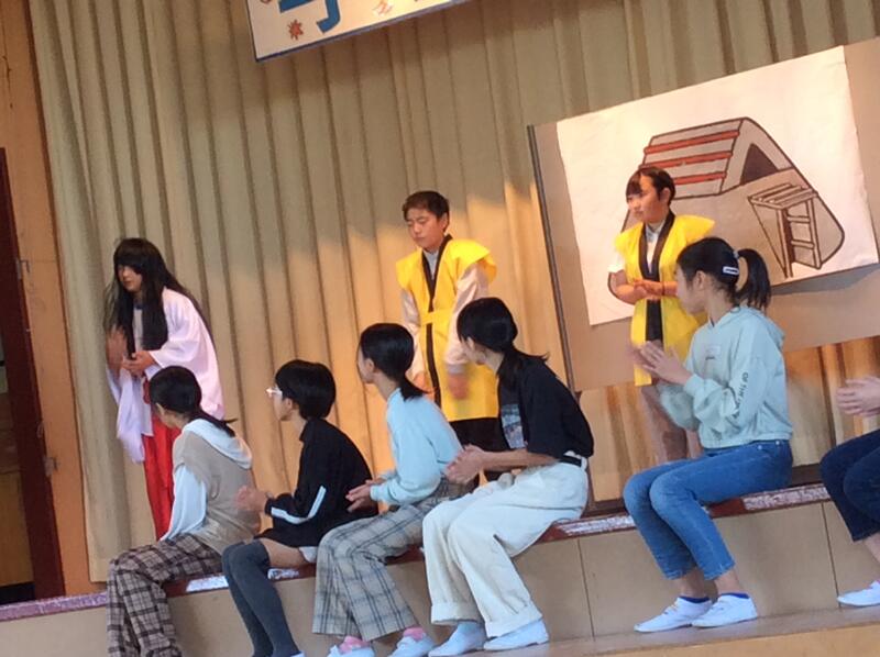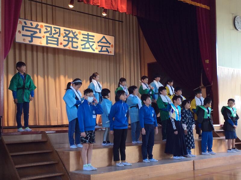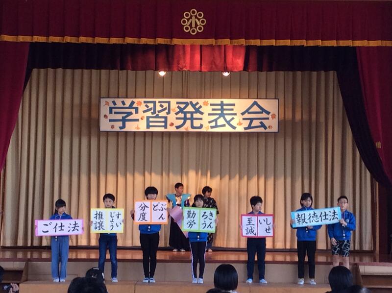 4年生は、総合的な学習劇「相馬ご仕法物語」です。相馬ご仕法の教えをわかりやすく劇を通して表現することができました。一人一人の役になりきった演技は、とても光っていました。