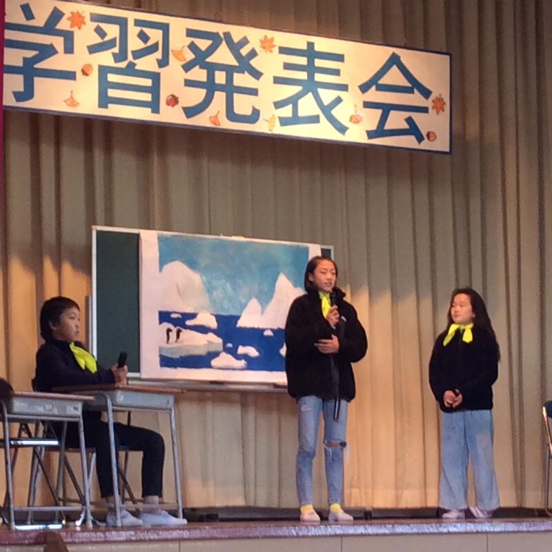 5年生は、総合的な学習の時間の発表「2100年の地球」と合奏「ひまわりの約束」でした。総合の学習で調べた森林伐採や地球温暖化の問題について自分たちでまとめたものを発表しました。その後に、9月からこつこつと練習を重ねてきた「ひまわりの約束」の合奏を披露しました。