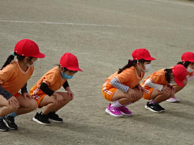年少児のはじめの言葉の後、準備運動をしっかりしました。