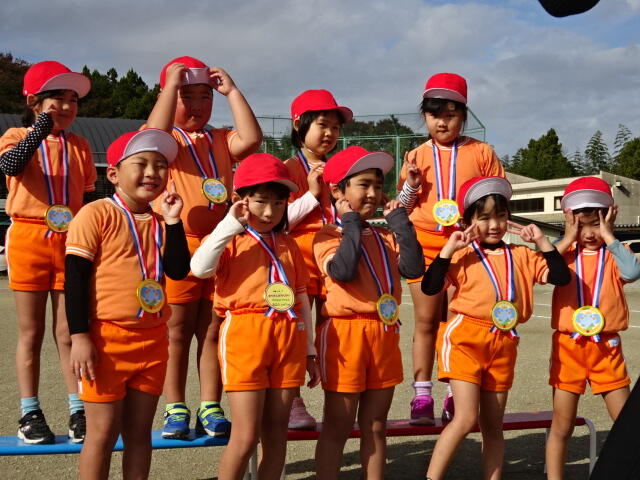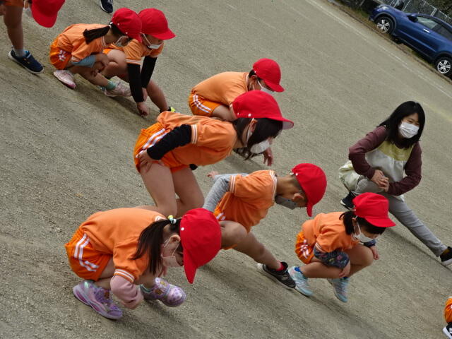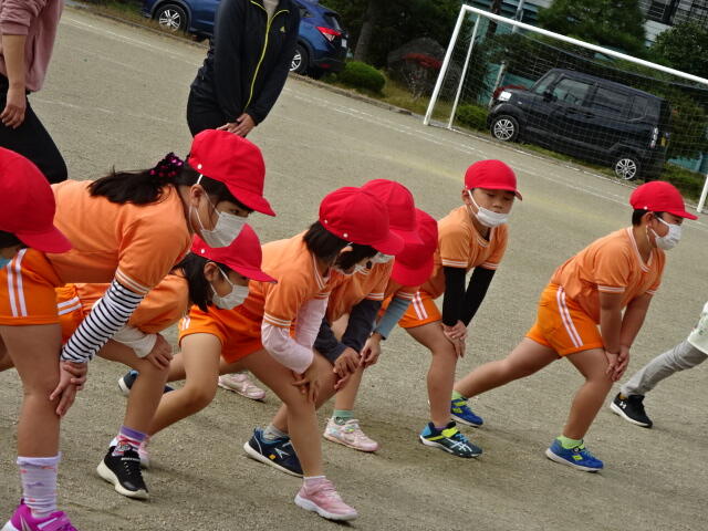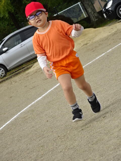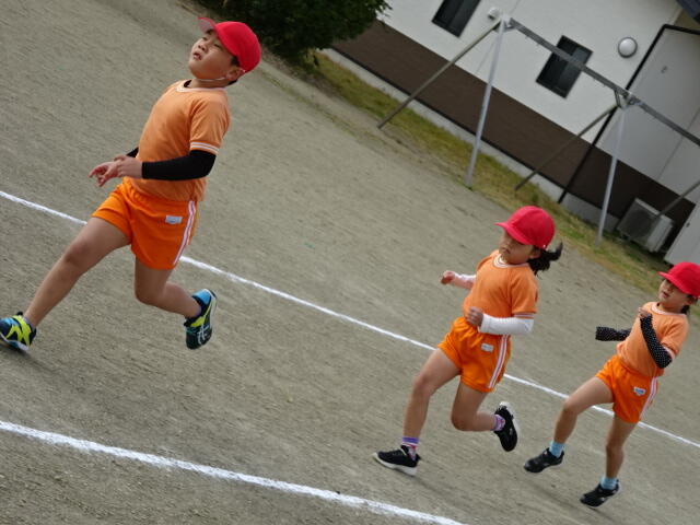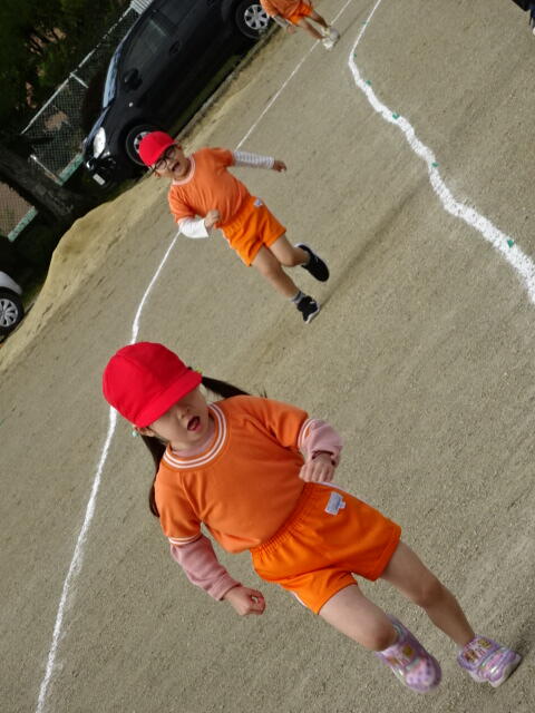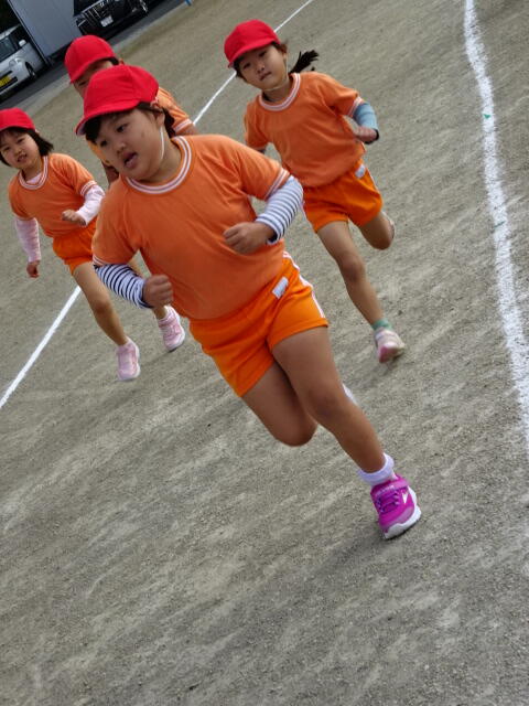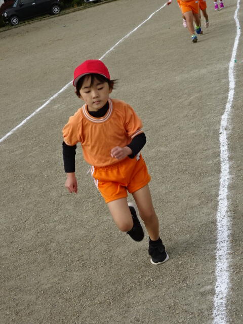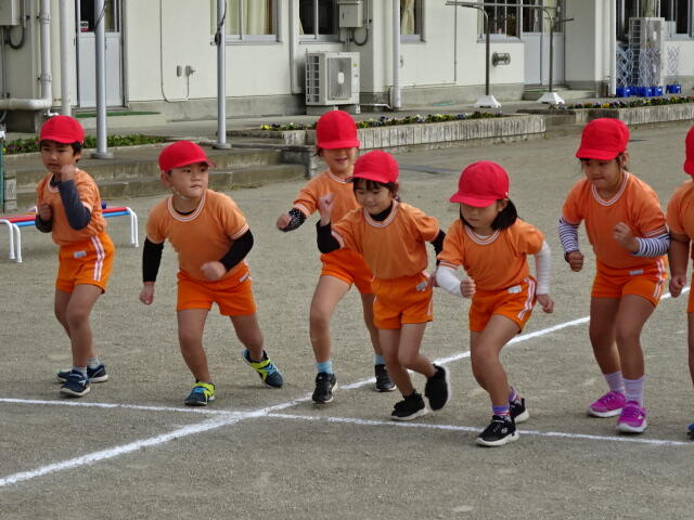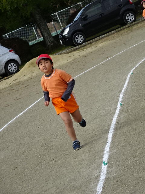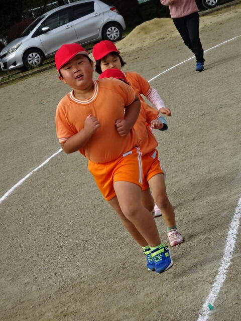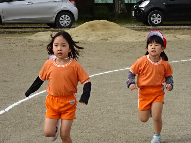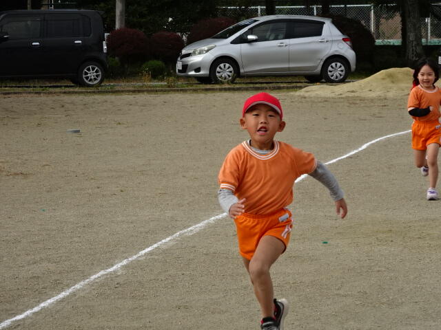 年少児は校庭2周、年長児は3周、力いっぱい走りました。