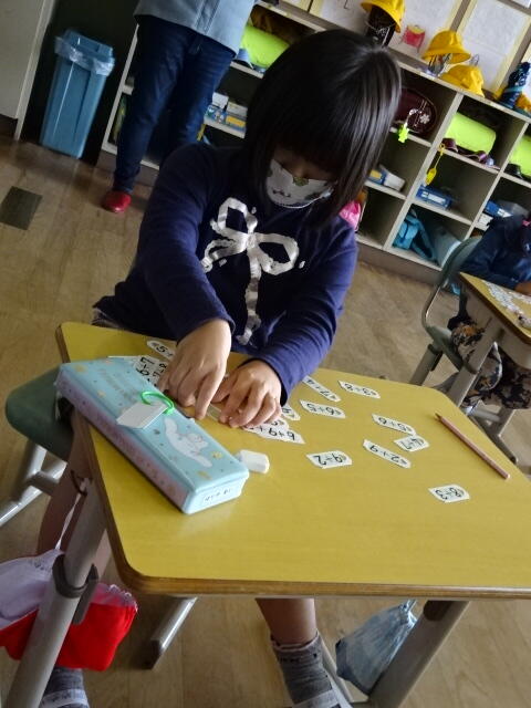 子どもたちは、たしざんのカードを使いながら、ひみつを探しました。