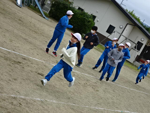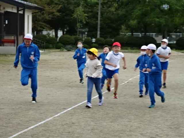 10月18日(火)業間のパワーアップタイムの様子です。11月のマラソン記録会に向けて、全校生が、校庭を走っています。1~3年生は、校庭のトラックにそって走り、4~6年生は校庭のトラックの外側を走ります。