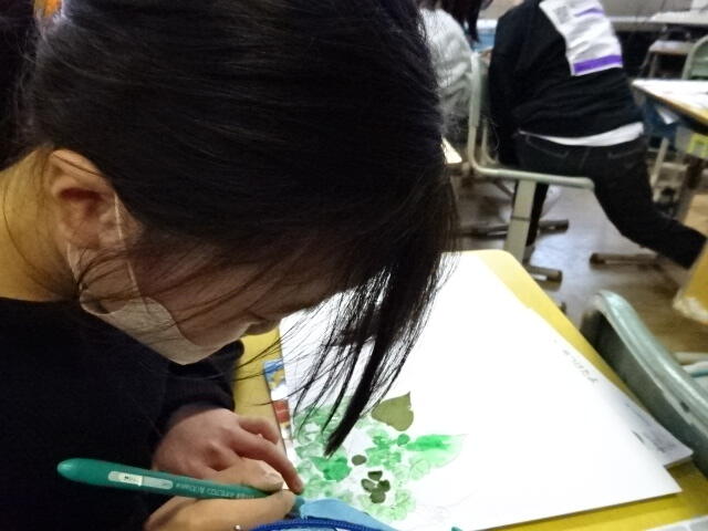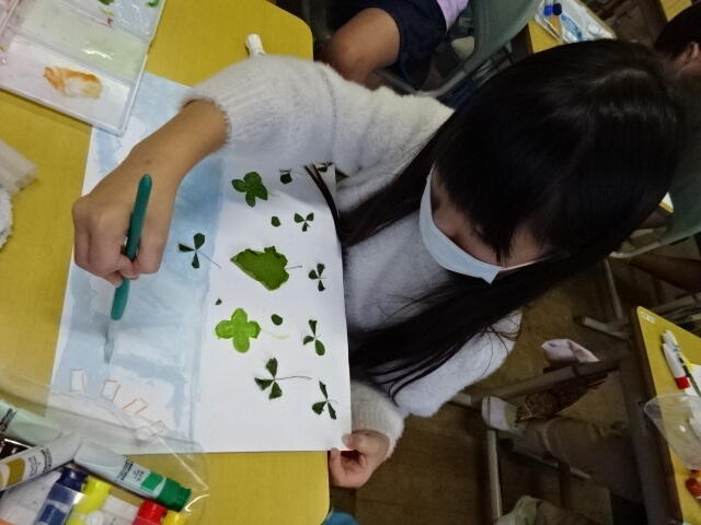 集めてきた葉の大きさや色、形によって絵の雰囲気が変わりますね。