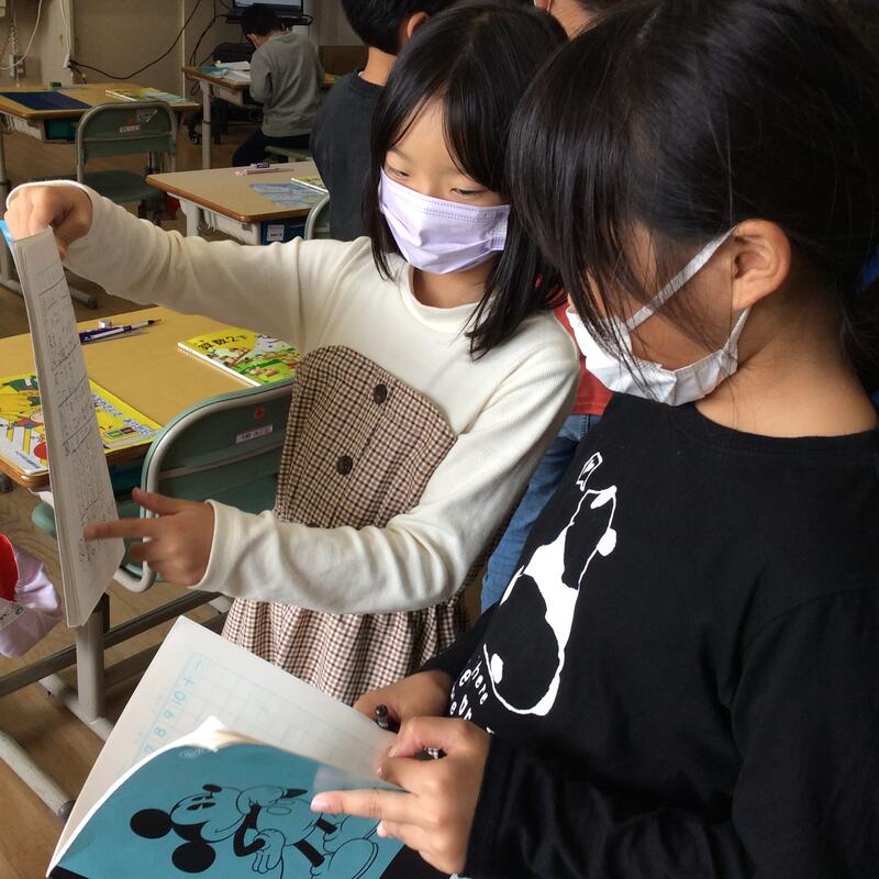 そして自分の考えをノートにまとめた人は、友達にどう考えたかを説明しました。
