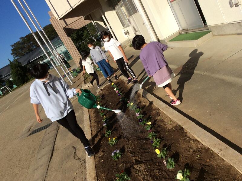 花を植えた後は、ボランティア委員が、水やりをしてくれました。