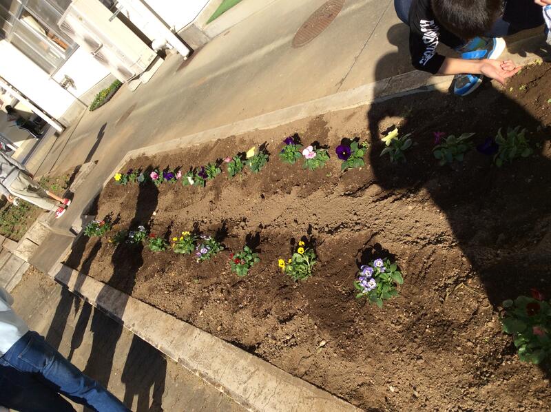 これから、花壇をきれいに彩ってくれることでしょう。なお、4年生だけでなく他の学年も、自分の学年の花壇に花植えをする予定です。