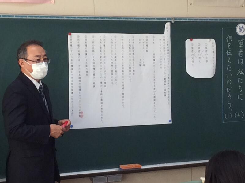 10月20日(木)の3校時目に、5学年で国語科の研究授業を行いました。説明文「固有種が教えてくれること」で、「筆者は、私たちに何を伝えたいのだろう」というめあてで学習しました。