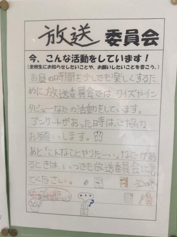 こちらは、校舎内の委員会コーナーに掲示してあるカードです。今回は、ボランティア委員会と放送委員会の活動を紹介します。