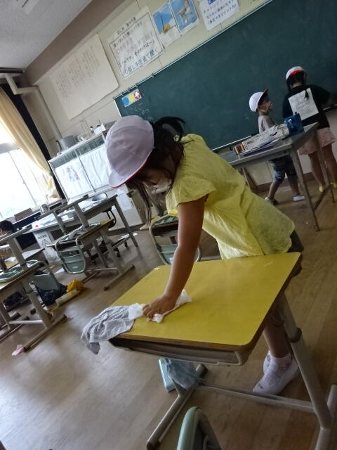 みんなで校舎をきれいにして、夏休みを迎える準備をしました。