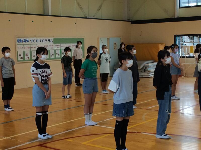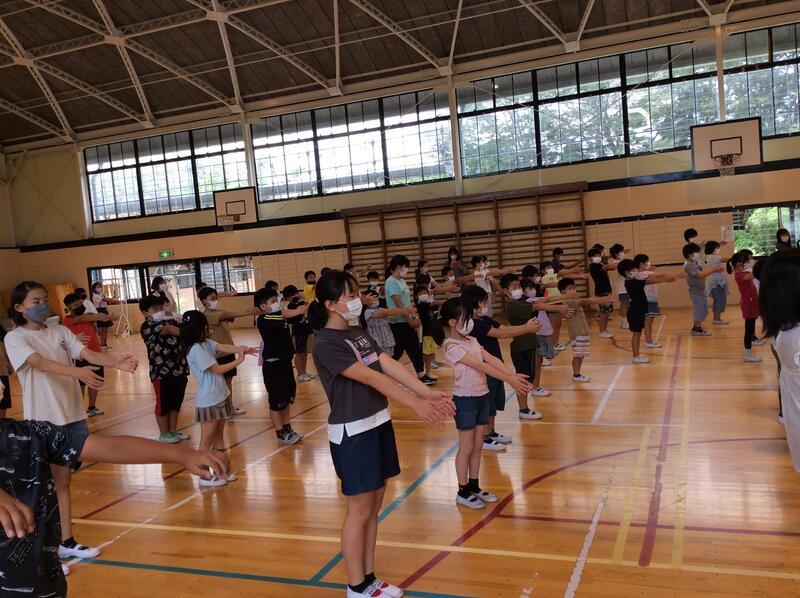 2022年7月20日 13時20分本日の第1学期終業式の様子です。第4校時に体育館で行いました。式を始める前に、前後左右の人と間隔をとって整列しました。