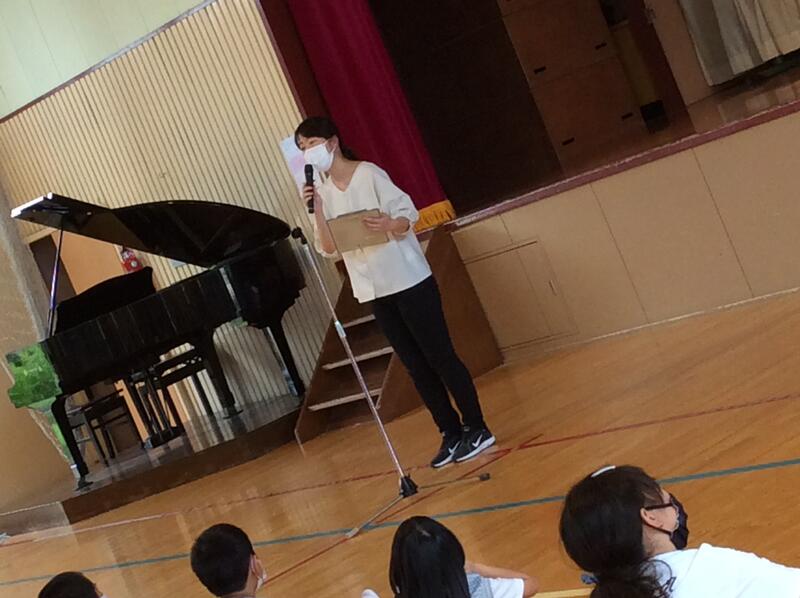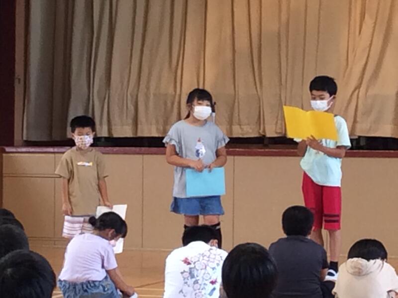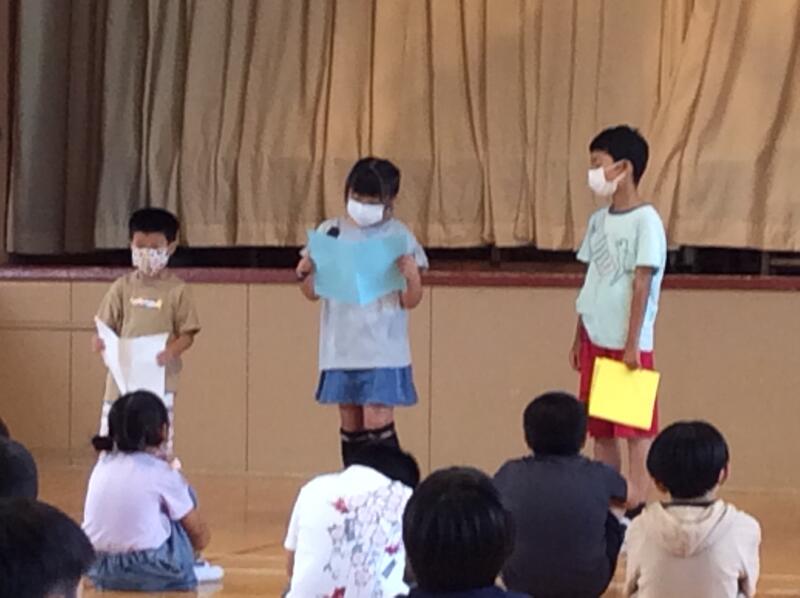 次に、代表児童による「1学期の反省と夏休みの抱負」というテーマで作文発表がありました。1学期にがんばったことや夏休みにチャレンジしたいことを発表しました。