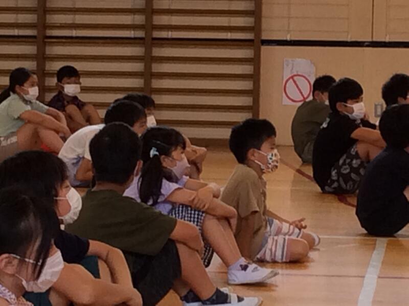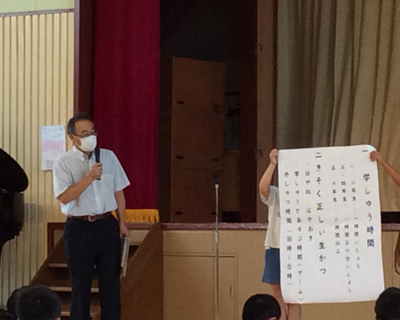 終業式の後は、担当の先生から「夏休みの生活について」と「健康について」の話がありました。