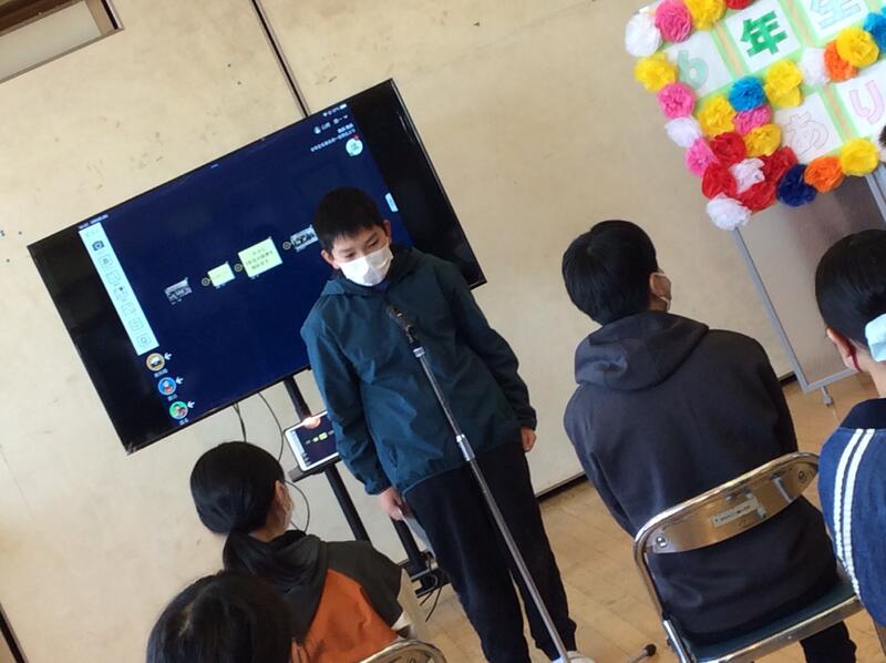 2023年3月8日 16時31分3月8日(水)の3校時に、6年生を送る会を行いました。今回もオンライン形式で行いました。会の進行を務めるのは5年生です。在校生を代表して、5年生が6年生に感謝の気持ちを伝えました。