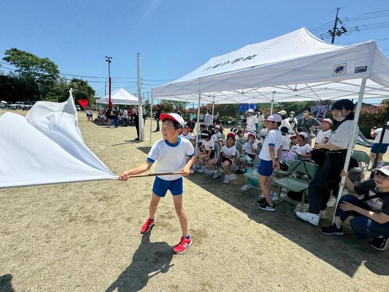 応援に「みんなでチャレンジ、ぜんりょくチャレンジ!」 2024年5月20日 10時26分 本校では、特別に応援団などを設けていませんが、係の仕事がない3・4年生を中心に競技ごとに自主的に応援してくれました。自分の組だけでなく、相手の組まで応援する姿が随所で見られ大変立派でした。