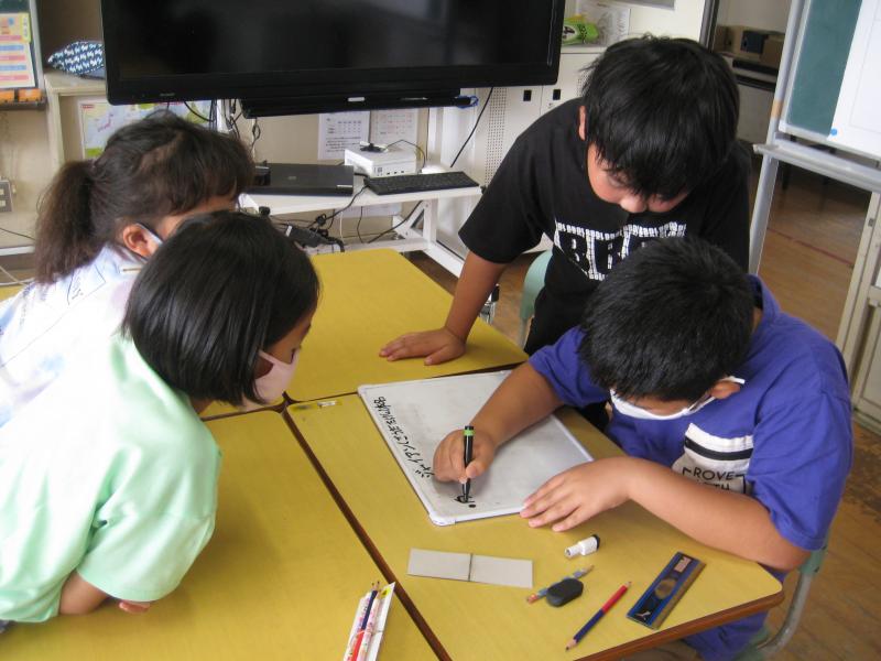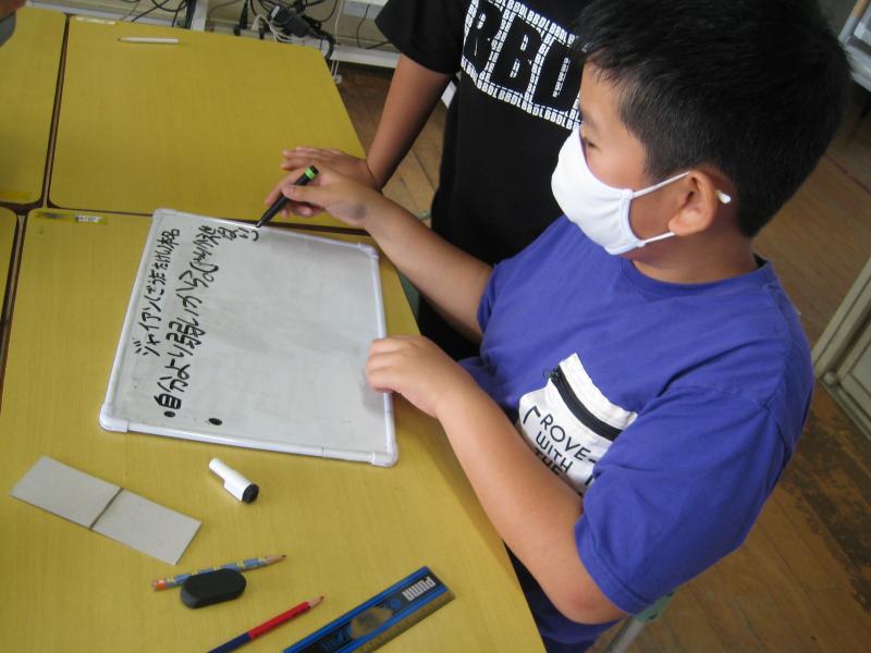 ジャイアンになりきった4年生は、どうしていじめをしてしまうのか、グループで考えを出し合いました。