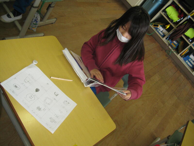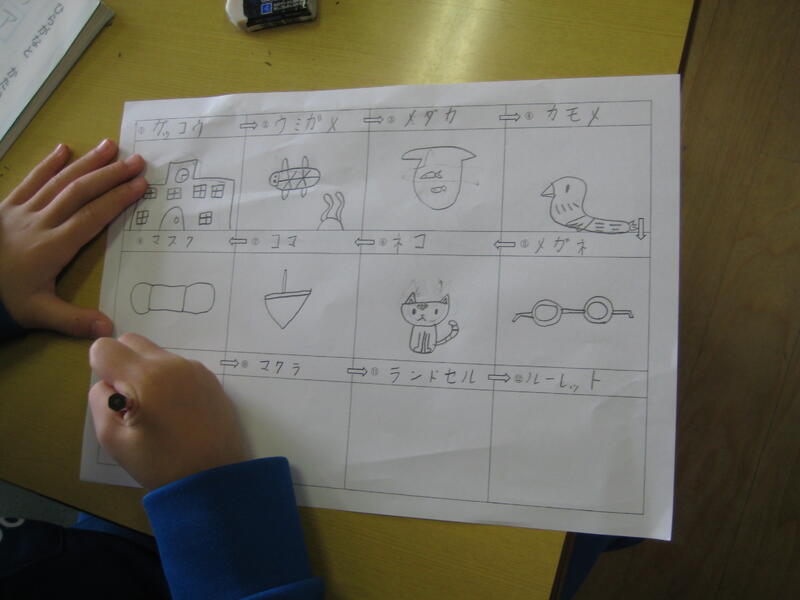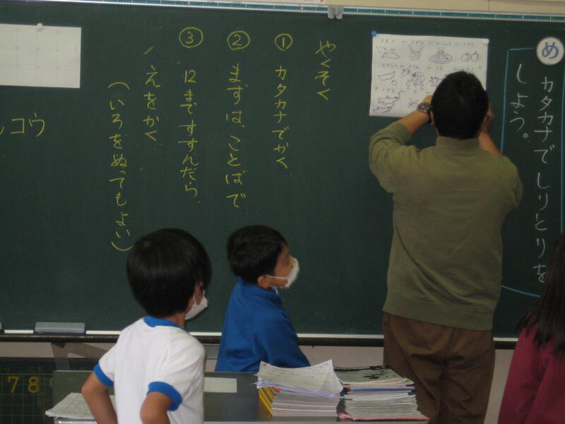 2021年11月10日 13時23分1年生がカタカナでしりとりをしています。